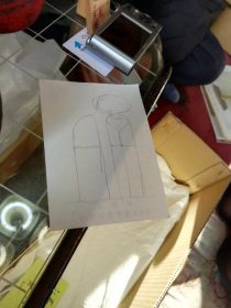 L’ispirazione può nascere da varie fonti, come dalla forma di alcuni oggetti che trovo interessanti oppure semplicemente guardando un programma in televisione, facendomi catturare da una figura interessante. Appena mi arrivano le idee butto giù immediatamente degli schizzi per fissarle prima che spariscano. Il nome è molto importante: in genere prima decido il nome della kokeshi e poi penso a come realizzarla. Successivamente scelgo il tipo di legno più adatto e infine la forma e il colore.