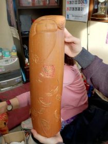 Il mio modo di lavorare è molto accurato e scrupoloso. Inoltre sono l’unico ad applicare alle kokeshi la tecnica di doratura detta “foglia d’oro”. Si tratta di un processo realizzato con diverse tecniche per impreziosire il manufatto tramite l’apposizione di uno strato sottile di oro. Ho utilizzato questa tecnica per la kokeshi Tsuta (つた) – Edera giapponese (vedi foto sotto), come si vede dalle decorazioni del kimono.