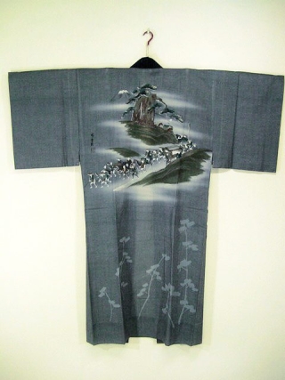 La fodera interna è decorata con haura-e (letteralmente “immagine dietro l’Haori”) dipinti a mano.