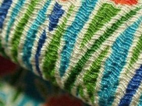 Miura Shibori – I nodi sono a cappio, quindi respingono meno la tinta. L’effetto prodotto è più sfumato e molto più economico. Questa tecnica viene utilizzata comunemente per gli abiti meno ricercati, per esempio gli Yukata.