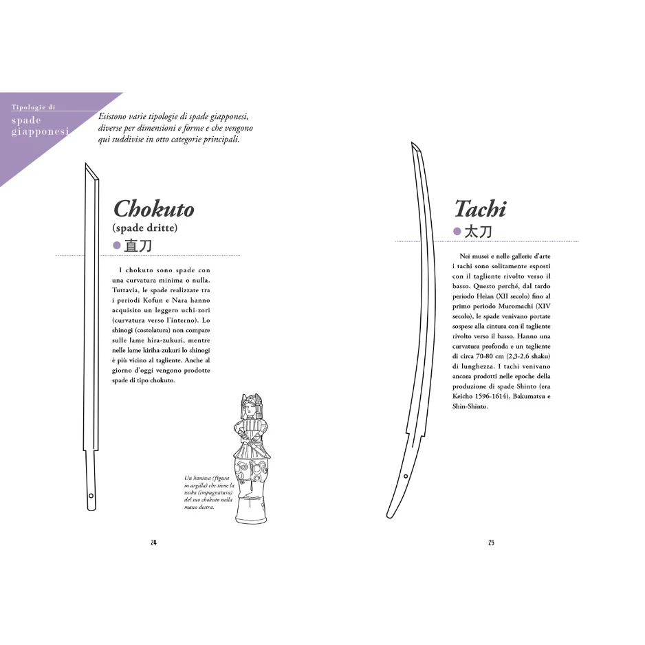Un manuale illustrato che offre uno sguardo informativo sulla storia, l’evoluzione, la fabbricazione, gli accessori e le montature, nonché la valutazione di queste eleganti lame. Il modo in cui viene realizzata una particolare spada riflette il periodo in cui è stata costruita. Esaminando la superficie finemente lucidata dell’acciaio e i diversi motivi sul bordo temprato, è possibile determinare la provincia, la scuola e persino il fabbricante. L’autrice spiega in dettaglio le varie tecniche di fabbricazione, l’evoluzione della forma e dello stile e il ruolo svolto nelle battaglie e nella cultura giapponese nel corso dei secoli.