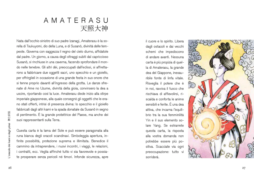 Un pratico cofanetto con un oracolo facile e intuitivo ispirato alla spiritualità giapponese, grazie al quale prendere coscienza delle circostanze che influenzano la nostra esistenza e orientare al meglio scelte e decisioni. Seguendo le istruzioni contenute nel libro, le carte riccamente illustrate con i principali kami (dèi e dee del pantheon giapponese) e yōkai, gli spiriti che animano la realtà secondo il folklore nipponico, stimoleranno il nostro intuito e ci aiuteranno a trovare la strada, in quest’avventura in perpetua evoluzione che è la vita.